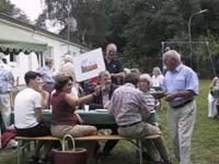 Schon am Tag vorher waren fleißige Frauenhände beim Gemüseschnippeln und Salatemachen tätig, sowie unser „Chefgriller“ Klaus Horstmann beim Zubereiten der Sardinen und des Fleisches. Am Sonntag dann Vorbereiten des Platzes: es waren wieder freiwillige Helfer dabei, Tische und Bänke aufzustellen, den Grill vorzubereiten, das Brot zu schneiden, Besteck, Teller und Trinkbecher zurechtzustellen. Es war ein emsiges Schaffen, welches mit Lust und Freude ausgeführt wurde. Man wartete nun auf die Gäste. Anfangs einzeln, dann in größeren Gruppen trafen sie ein, um gemeinsam ein sehr vergnügtes Fest zu erleben. Doch gehen wir mal in die Statistik. Wir sind etwas mehr als 230 Mitglieder, aber nur 60 fanden den Weg zum Feiern. Sie brachten allerdings 43 Gäste mit. Wir waren also insgesamt 103 Teilnehmer, ein neuer Rekord in der Geschichte unserer Sardinhada. Doch von gut 230 Mitgliedern kamen nur 60 zur Sardinhada, das sind rund 26%. Warum nur so wenig? Wenn man die 43 Gäste dagegen hält, so ist das doch ein Zeichen dafür, dass die Sardinhada Zuspruch findet. Verzehrt wurde bei der Sardinhada: 32 kg Sardinen, 16 kg Fleisch, 40 Würstchen, 65 l Wein (rot und weiß), 18 l Mineralwasser, 18 Kannen Kaffee und eine große Zahl gespendeter Kuchen. Untermalt wurde das Ganze von Fado-Klängen aus Ulrich Deckers Stereo-Anlage. Am späten Nachmittag löste sich die Versammlung so langsam auf. Fazit: Es war ein schöner und gemütlicher Tag. Die Teilnehmer werden noch lange davon reden. Für das nächste Jahr hoffen wir, dass noch mehr Mitglieder den Weg zur Sardinhada finden werden. Theodor Gröpper |