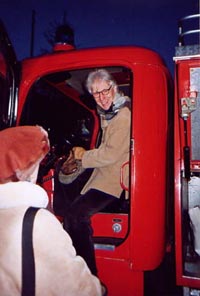 Maralde Meyer-Minnemann beim Empfang des Feuerwehrautos