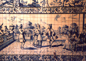 ...Licht dringt durch die Glasfassade auf Azulejos...