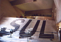 Ich stehe noch staunend da, als mein Bruder längst die Metalltreppe zum Eingang hinaufstiegen ist. Und drinnen angekommen, staune ich weiter über ein Treppenhaus, wie ich noch nie eines gesehen habe. Vom Schauen ganz absorbiert, verliere ich meinen Bruder aus den Augen, der sich derweil still einer Besuchergruppe angeschlossen hat. Aber als ein freundliches junges Mädchen mich mit den Worten aufhält "Sie dürfen da nicht weitergehen", rettet er mich, indem er in schönstem Portugiesisch mit erkennbarem Akzent freundlich bestimmt erklärt, "Wir gehören zu der Gruppe", und gleich mögliche Einwände mit dem Hinweis entkräftet, "Sonst wären wir doch nicht hier". Und so kommen wir, mein Bruder, meine uralte Nikon F3 und ich mit einer Gruppe schwyzerdeutsch redenden Architekturstudenten in den Genuss einer Führung durch die Casa da Música.