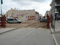 Bin jetzt in Azambuja. Hier herrscht Feststimmung. Die 4-tägige traditionelle Feira de Maio fängt heute Abend an. Letzte Vorbereitungen und Vorkehrungen werden gemacht. Männer und Frauen mit Schaufeln verteilen den vielen Sand der von großen Maschinen in die Innenstadt gebracht wurde; Häuser und Läden wurden mit großen Holz-Barrikaden geschützt; denn heute Abend werden die Stiere losgelassen! Stiere und Menschen werden wild durch die Straßen laufen. Die Lautsprecher sind schon kräftig in Betrieb. In der ganzen Stadt hört man Folkloremusik, Fado und spanische Volksmusik. Leider ist alles geschlossen, deswegen kann ich wieder nicht ins Internet. Esse gerade eine Suppe (Sopa de Grão). Habe mich entschlossen weiterzugehen. Es ist 12:30 Uhr.