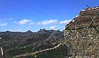 Nach eintägiger Ruhepause nahm uns João bis nach Montalegre mit. Von dort aus erreichten wir per Anhalter die Hochebene von Pitões das Júnias, einem gottver-lassenen Nest in der Provinz Trás-os-Montes (Land hinter den Bergen), am Ostrand des Nationalparks Peneda-Gerês. Den letzten Kilometer marschierten wir durch ein Heidemoor. Den Horizont begrenzte die Silhouette eines zackigen Granitkammes, über dem sich drohend rabenschwarzes Gewittergewölk zusammen-geballt hatte. Vorbei an einigen Gastarbeiterhäusern (casa do emigrante) mit ihrer auffälligen Farbgebung und den Statussymbolen – Fernsehantenne, marmorner Treppen-aufgang, Auto – stehen wir unvermittelt in einem der transmontanen Dörfer, in dessen düsterem Gassen-labyrinth wir – zumal in der Finsternis des immer lauter drohenden Unwetters – sofort jede Orientierung verlieren.