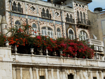 Stadtpalais mit Bougainvillea an der Avenida 24 de Julho