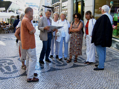 Dr. Peter Koj führt seine Gruppe durch die Baixa