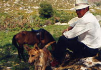 Der Aufstieg in dieses Gebiet ist mühsam und zeitraubend. So können die Kühe natürlich nicht am selben Tag zurück in den heimischen Stall, sondern bleiben Wochen und Monate sich selbst überlassen. Gelegentlich steigt ein Dorfbewohner hinauf, um nach dem rechten zu sehen. Im Falle der Kühe von Sirvozelo und Sela ist dies Domingos. Er selbst besitzt keinen eigenen Hof, und so hilft er den Bauern der Region bei der Erntearbeit und kümmert sich gegen ein kleines Entgelt um deren Kühe. So kennt keiner das unwegsame Gelände besser als Domingos, eine Tatsache, von der ich schon bei meiner ersten Durchquerung des Hochplateaus (1979) profitierte. Domingos geleitete unsere kleine Wandergruppe damals bis zu den Minas de Carris (nachzulesen in meinem Bericht "Das Wandern ist des Portugiesen (Un)Lust" im Rundschreiben 2 der PHG).