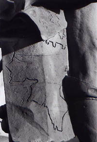 Deutlich erkennbar ist nun auch die Karte, die unterhalb des Sprachrohrs ausgebreitet ist. Sie zeigt die Umrisse Afrikas, allerdings in sehr grober Verformung. Der Bildhauer will damit offensichtlich auf die ptolemäischen Karten anspielen, die erst durch die portugiesischen Entdecker und Kartographen korrigiert wurden.