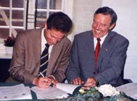 Städtepartnerschaft zwischen Cuxhaven und Ílhavo offiziell besiegeltVon Holger Wienzek *Der 4. Mai 2002 war und ist ein großer Tag für die portugiesische Gemeinde von Cuxhaven - An diesem Tage wurde ein offizielles Freundschaftsabkommen zwischen Cuxhaven und Ílhavo im Schloss Ritzebüttel von Cuxhaven von Vertretern beider Stadtparlamente unterzeichnet. Diesem formellen Akt, dem viele Jahre intensiver Bemühungen, besonders von einer kleinen Gruppe aus Cuxhaven, voraus gingen, wohnten zahlreiche Gäste aus der Politik, der Wirtschaft, den portugiesischen und spanischen Kulturvereinen und engagierte Cuxhavener Mitbürgern bei. Der Grundstein für dieses Abkommen wurde, anlässlich des Antrittsbesuches des neuen portugiesischen Generalkonsuls in Hamburg Dr. Pinto Machado, ebenfalls zuständig für Cuxhaven, im Mai 1995 im Rathaus von Cuxhaven gelegt. Damals wurde der Wunsch nach einer Städtepartnerschaft von Vertretern des hiesigen portugiesischen Kulturvereines an die Vertreter beider Länder herangetragen, der uneingeschränkte Zustimmung fand. Kurz darauf besuchte eine kleine Cuxhavener Delegation, während eines Urlaubsaufenthaltes, den Präsidenten der Câmara Municipal de Ílhavo und unterbreitete ihm dieses Vorhaben. Zum damaligen Zeitpunkt unterhielt IÍhavo noch keine derartige Verbindung zu einer Stadt außerhalb Portugals und dieses Begehren wurde auch hier positiv aufgenommen und begrüßt. Bei diesen Lippenbekenntnissen blieb es dann und nur durch jahrelange unermüdliche Gesprächsführung mit beiden Seiten und dem Einsatz persönlicher Kontakte führte dieses Vorhaben im Mai 2002 endlich zum Erfolg. Für die Stadt Ílhavo unterzeichnete der Oberbürgermeister dieser Stadt Ribau Esteves, der in Begleitung seines Stellvertreters Fernando Caçoilo in Cuxhaven eintraf, die formelle Urkunde und bedankte sich in seiner Ansprache für das unermüdliche Engagement einiger weniger für dieses Unterfangen und sah dieses als Zeichen für ein Zusammenwachsen Europas auch auf kleiner, aber wichtiger Ebene. Er verband diesen feierlichen Akt mit der Hoffnung, das beide Länder und besonders beide Städte noch näher zusammenrücken und das eine oder andere voneinander lernen oder zumindest mitnehmen können. Als sichtbares Zeichen überreichte er dem 1. Bürgermeister der Stadt Cuxhaven,