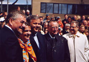 Doch jetzt strahlt der Himmel und die Mienen (ganz links HafenCity-Chef Jürgen Bruns-Berentelg)