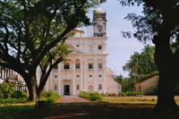 Der Convento de Santa Mónica, eines der größten Nonnenklöster des portugiesischen Reiches, liegt fast in Sichtweite und gegenüber die Sé, mit ihren 76 Metern Länge, 35 Metern Höhe und 55 Metern Breite die größte Kirche Asiens. An sie schließt die Igreja de São Francisco an, die heute Archäologisches Museum ist und als eines der wenigen Bauwerke in Indien gilt, in denen manuelinische Stilelemente zu finden sind. Wenige hundert Meter weiter liegt, schneeweiß, frisch renoviert, die Igreja de São Caetano, die Kirche des Theatinerordens, deren Bauplan dem des Petersdoms in Rom entspricht. Von dort ist sind es ein paar Schritte zum Arco do Vice-Rei, einem Torbogen, der von Francisco da Gama (1557-1600) in Erinnerung an seinen Urgroßvater richtet wurde und durch den die Straße hinunter zum Mandovi-River führt, auf dem 1510 Afonso de Albuquerque auf der Suche nach Gewürzen zur Stadt des Adil Shah kam und sie umgehend einnahm.