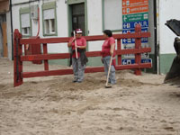 Bin jetzt in Azambuja. Hier herrscht Feststimmung. Die 4-tägige traditionelle Feira de Maio fängt heute Abend an. Letzte Vorbereitungen und Vorkehrungen werden gemacht. Männer und Frauen mit Schaufeln verteilen den vielen Sand der von großen Maschinen in die Innenstadt gebracht wurde; Häuser und Läden wurden mit großen Holz-Barrikaden geschützt; denn heute Abend werden die Stiere losgelassen! Stiere und Menschen werden wild durch die Straßen laufen. Die Lautsprecher sind schon kräftig in Betrieb. In der ganzen Stadt hört man Folkloremusik, Fado und spanische Volksmusik. Leider ist alles geschlossen, deswegen kann ich wieder nicht ins Internet. Esse gerade eine Suppe (Sopa de Grão). Habe mich entschlossen weiterzugehen. Es ist 12:30 Uhr.