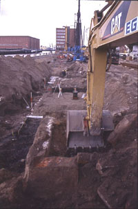 Als im Mai 2003 mit dem Ausheben der ersten acht Baufelder am Sandtorkai begonnen wurde, war die im Helms-Museum angesiedelte Bodendenkmalpflege mit einem kleinen Mitarbeiterteam vor Ort, um die Ausschachtungsarbeiten zu begleiten (Abb. 1). Erwartet wurden u.a. Baubefunde der hier ehemals verlaufenden Stadtbefestigung, die sich in der ersten Hälfte des 17. Jahrhunderts als hoher Erdwall mit Bastionen und vorgelagertem Wassergraben präsentierte (Abb. 2). In den Baugruben konnten an verschiedenen Stellen reihenförmig angeordnete Pfahlgründungen dokumentiert werden, die zur hölzernen Innenstützkonstruktion des Stadtwalles um 1600 und zu einer zwischen 1655 und 1657 durchgeführten Instandsetzungsmaßnahme gehörten. Aus den aufgeworfenen Wallschichten sowie aus der Verfüllung einer im Wallbereich vorgefundenen Grube wurde umfangreiches Fundmaterial aus der Zeit zwischen 1575 und 1650 geborgen, das im Zuge der Müllbeseitigung in den Wallkörper eingebracht worden war. Dieses Material, hauptsächlich Keramik, aber auch Tonpfeifen, Ziegel, Reste von Lederschuhen, Metallobjekte, Stoffreste und Tierknochen, bietet einen guten Einblick in die Sachkultur des ausgehenden 16./17. Jahrhunderts. Bemerkenswert ist das Spektrum des vorliegenden Haushaltsgeschirrs, das sowohl einheimische als auch importierte Keramikwaren umfasst. Mit Hilfe der Importkeramik ist es möglich, Handelsbeziehungen aufzuzeigen, die zugleich das Sozialgefüge der damaligen Hamburger Bevölkerung widerspiegeln.