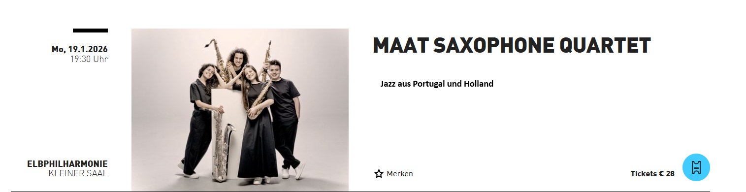 Ankündigung: Jazz aus Portugal und Holland - 19.1.26 in der Elbphilharmonie kleiner Saal
