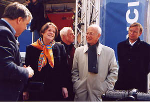 Doch jetzt strahlt der Himmel und die Mienen (ganz links HafenCity-Chef Jürgen Bruns-Berentelg)