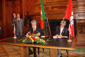 Am 10. November 2005 wurde das Protokoll unterzeichnet, das den Portugiesischunterricht an der Rudolf Roß Gesamtschule regelt. So geschehen acht Jahre nach dem ersten Treffen der Schulleiterin, Dr. Annette Buhr, und unserem Referenten für Kultur und Jugend, Dr. Peter Koj, und sechs Jahre nach dem eigentlichen Beginn des bilingualen deutsch-portugiesischen Unterrichts (zu den ersten Schritten der Rudolf Roß Gesamtschule der Artikel des ehemaligen Leiters der Primarstufe, Norbert Voigt, in der Portugal-Post 8). In den prächtigen Räumlichkeiten des Phönixsaales im Hamburger Rathaus und in Anwesenheit zahlreicher Persönlichkeiten aus dem Bereich der Kultur und des Bildungswesens, vollzogen die Schulsenatorin, Dr. Alexandra Dinges-Dierig, und der portugiesische Botschafter João de Valera, unterstützt vom Hamburger Generalkonsul José Pedro Machado, den letzten Federstrich an diesem so wichtigen Vertrag.